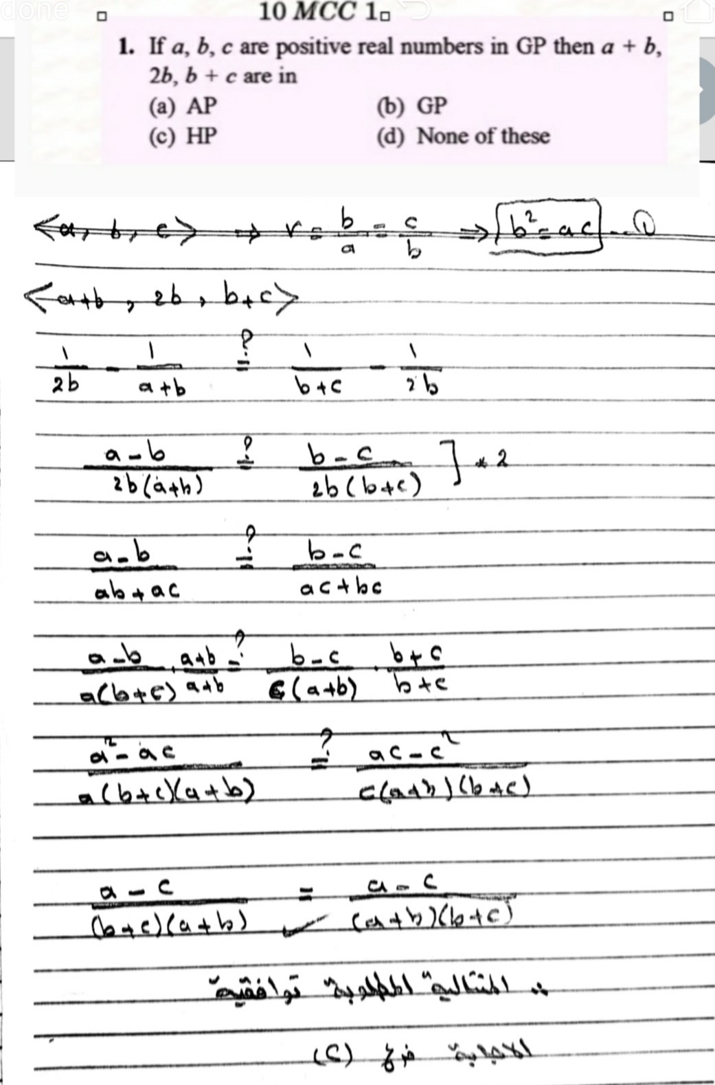 y. , z وسطين هندسيين بين نفس العددين الموجبين.....