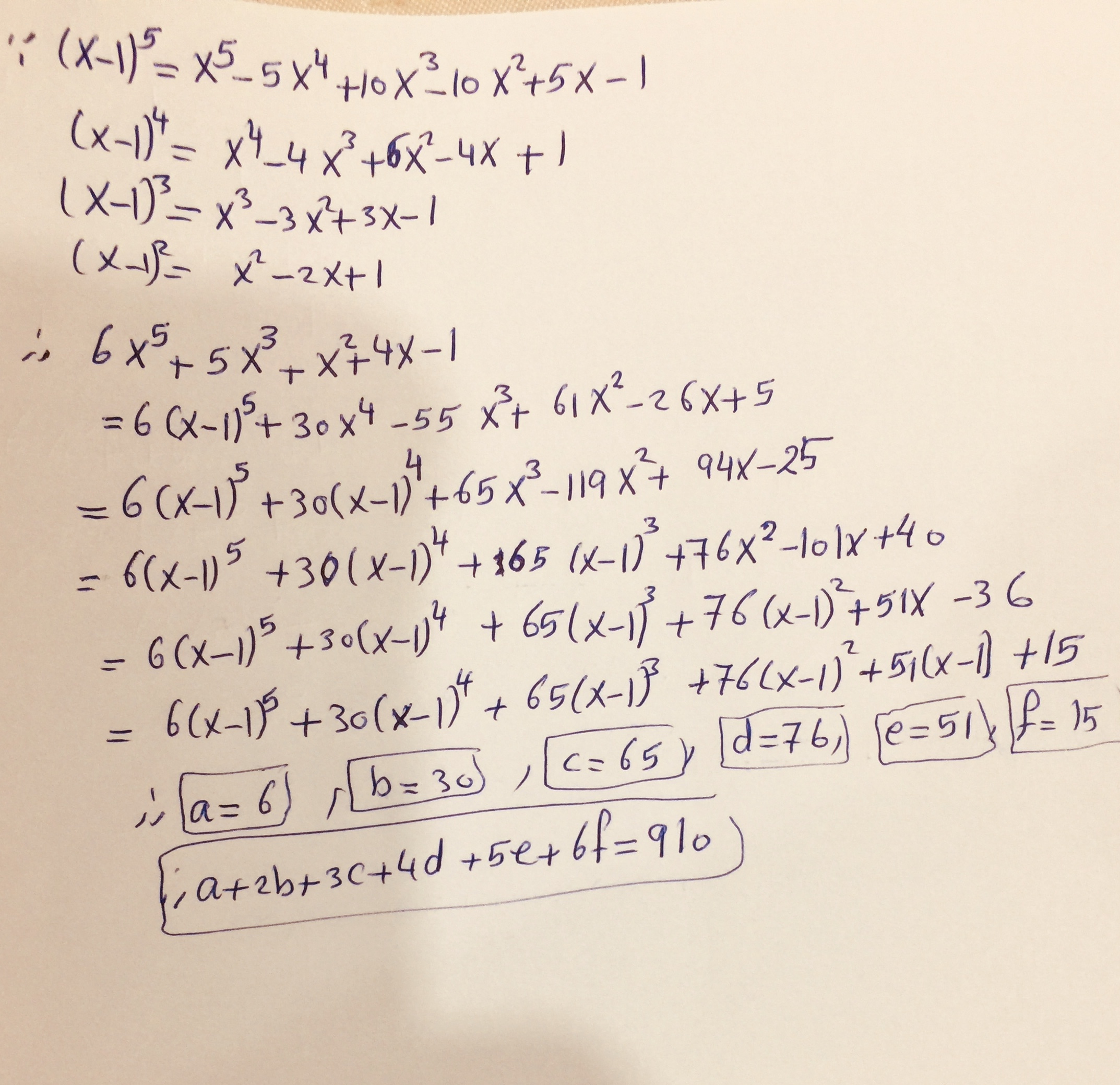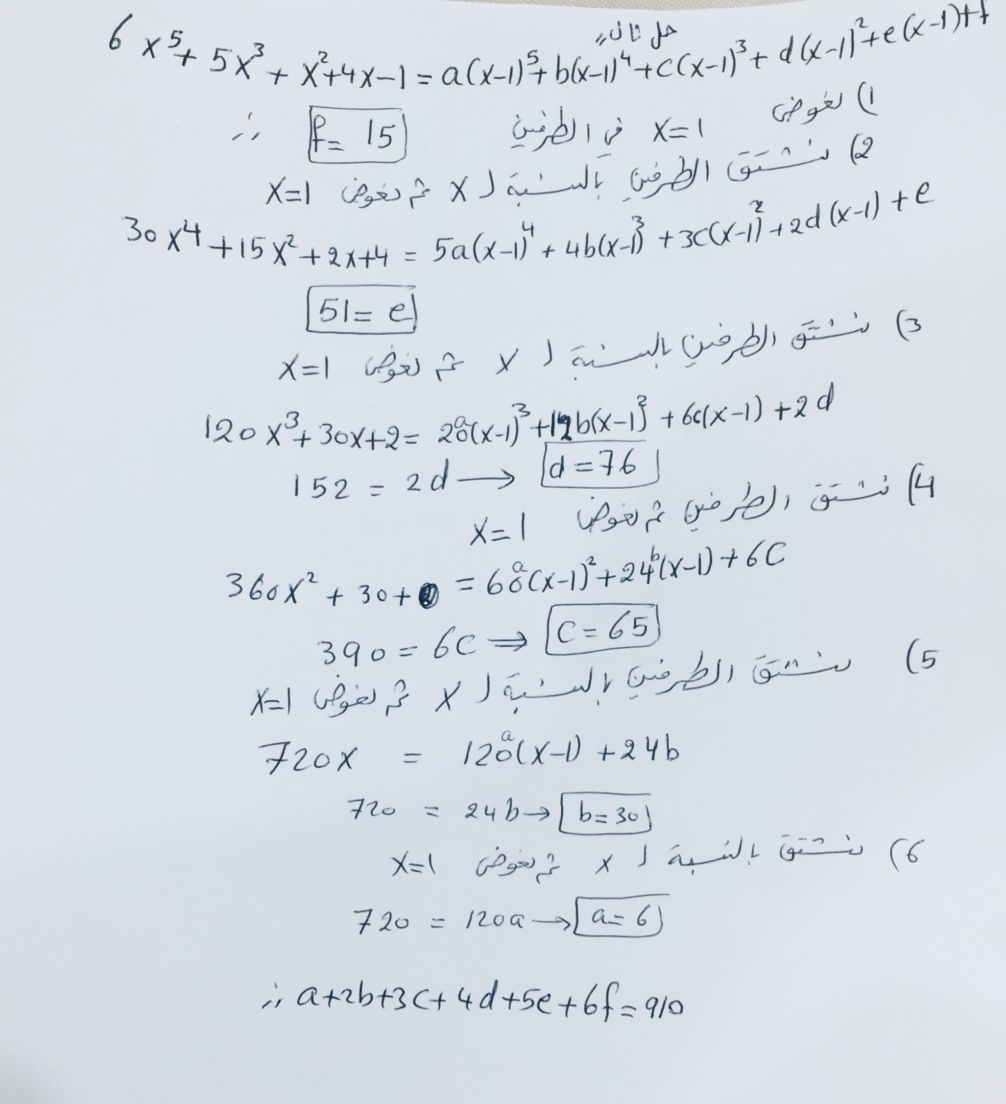 هناك طريقه ثالثه بفتح اقواس الطرف الايمن كمفكوك ذي الحدين ومقارنة الحدود نحصل على مجموعة معادلات بدلالة a,b,c,d,e,f