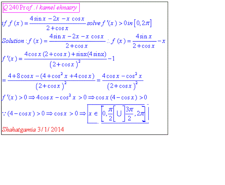 وبالطبع يوجد طريقة أقصر أتركها لمن يحب أن يقدم حل