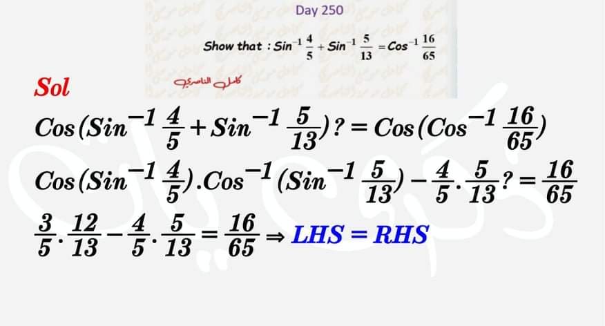 أعتذر منك استاذي لاأدري لماذا حين اختبرها بحاسبة الجهاز أراها لاتحقق ربما بسبب وجود النسبة الثابتة ولانها غير دقيقة تعطي نتائج مغايرة وهكذا الأمر بالنسبة لقيم اخرى حين اختبرها بنفسي تحقق بينما على الحاسبة لاتحقق ..شكري واحترامي . ذكرى يات