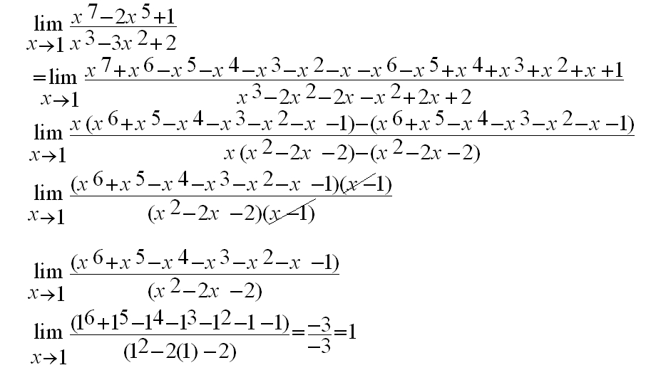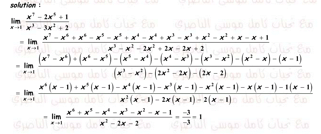 يمكن الحل باستخدام طريقة القسمة المطولة بقسمة كل من البسط والمقام على ( x - 1 )