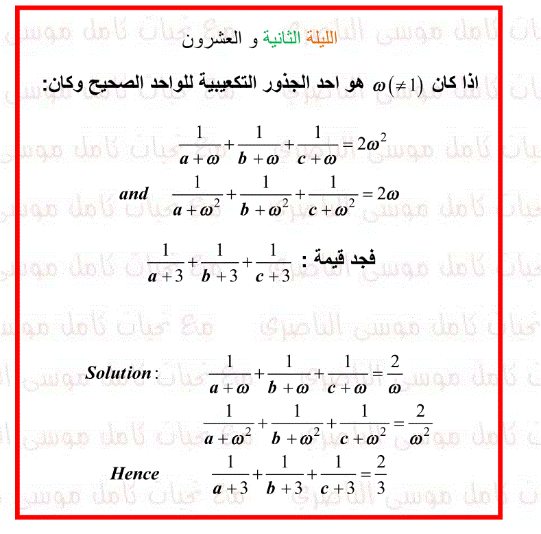 إحدى طرائق حل التمرين الأول من الليلة الخامسة والعشرون