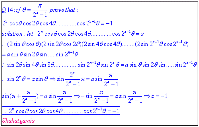 رد: سلسلة المثلثات من الامتحانات المدرسية العالمية