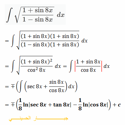 \[Evaluate:\,\,\int {\sqrt {\frac{{1 + \sin 8x}}{{1 - \sin 8x}}} } \,\,dx\]