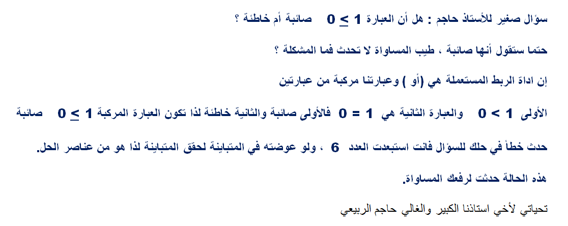 اتمنى ممن يحب ان يتقن لعبة المتباينات أن يلاحق التفصيل الدقيق للاعب هذه اللعبة الا وهو استاذنا الكبير عمر محمود