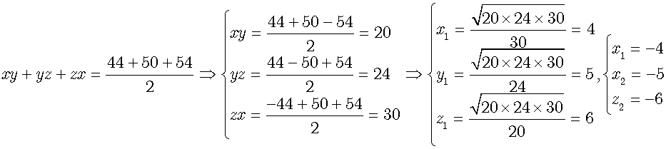 Q2. Solve x(y + z) = 44 ; y(x + z) = 50 ; z(x + y) = 54